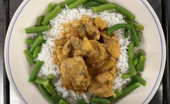 Curry de volaille aux ananas, haricots brisés, riz thaï