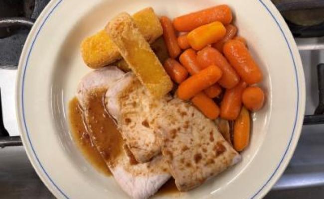 Menu & Snack du jour SOUPE : Épinards Rôti de dinde, carottes jeune, polenta Dessert : Poire MENU VÉGÉTARIEN : Céleris rave rôti, carottes jeune, polenta Allergènes : gluten (polenta) lait (polenta)