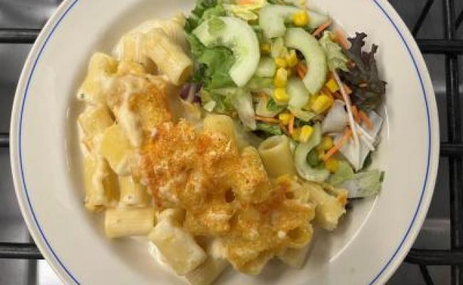 Menu & Snack of the day SOUPE : Chou-fleur Mac and cheese au cheddar, salade de saison Dessert : Crème vanille Allergènes : oeufs (mac & cheese) gluten (mac & cheese) lait ( mac & cheese - dessert)