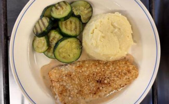 Menu & Snack of the day SOUPE : Tomate Merlu MSC, sauce normande, courgette, purée Dessert : Pomme MENU VÉGÉTARIEN : Curry de légumes, courgette, purée Allergènes : gluten (merlu) poisson lait (sauce - purée)