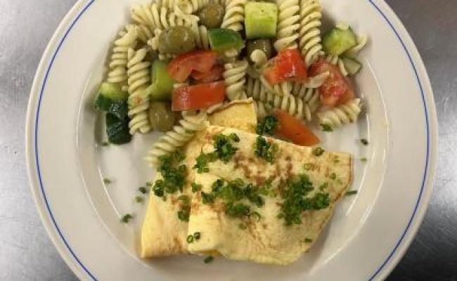Menu & Snack du jour SOUPE : Navet Omelette, salade pâtes, crudités Dessert : Yaourt BIO Allergènes : oeufs (omelette - salade) gluten (salade) lait (omelette - dessert) moutarde (salade)